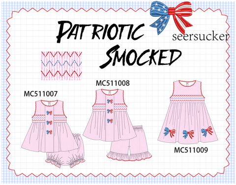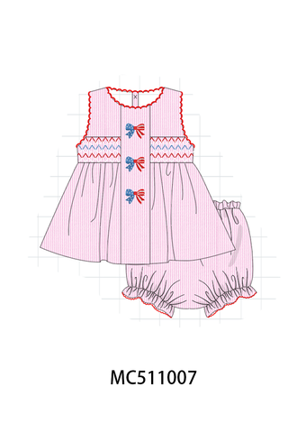 PO73 Pink Patriotic flag smocked collection